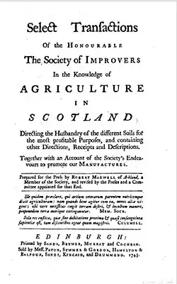 - 1 2 3 4 5 J. D. Mackie, B. Lenman and G. Parker, A History of Scotland (London: Penguin, 1991), ISBN 0140136495, pp. 288–91. Gilles Denis, "Sociétés d'agriculture et diffusion des Lumières" in Frank Salaün and Jean-Pierre Schandeler, Enquête sur le Construction des Lumières (Centre international d'étude du XVIIIe siècle: Ferney-Voltaire, 2018), pp. 108-109.