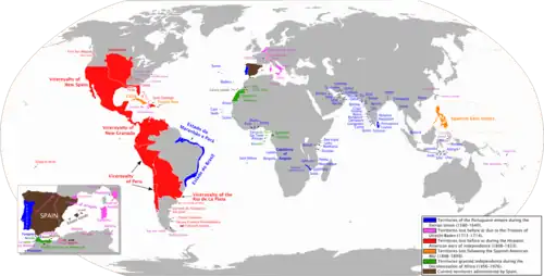 In between the core and the periphery was the semi-periphery, which constituted both previous core regions that had declined like Italy, Spain and Portugal, and peripheries that had improved their position, like southern [[Germany] and southern France.[11] Spain and Portugal had taken advantage of the opening to Atlantic control left by the decline of Italian powers like Genoa and Venice.[11] Much like the core European powers, Spain and Portugal had strong navies and expansive colonial domains, which they exploited for their natural resources and cheap labor.[11] Rather than using the increased wealth to develop strong domestic manufacturing sectors, like other Western European powers, Spain and Portugal used imported gold and silver to obtain manufactured goods from the core countries, which relegated them to semi-periphery, instead of core, status.[11] They had control over several peripheral regions and exploited them, a characteristic of a core region, but those countries failed to develop the quality manufacturing industries and the access to international banking that further defined core countries, which left them a step below in the world system at semi-periphery status.[11]
