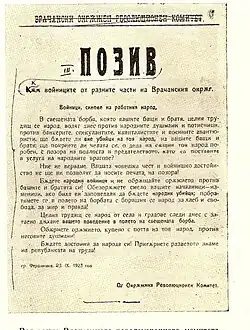 ![]() Leaflet of the Vratsa revolutionary district intended for the soldiers sent to crush the uprising. | |||||||