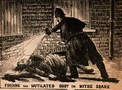 The unidentified killer Jack the Ripper, who has been called the first modern serial killer,[34] killed at least five women, and possibly more,[35] in London in 1888. He was the subject of a massive manhunt and investigation by the Metropolitan Police, during which many modern criminal investigation techniques were pioneered. A large team of policemen conducted house-to-house inquiries, forensic material was collected and suspects were identified and traced.[36] Police surgeon Thomas Bond assembled one of the earliest character profiles of the offender.[37]