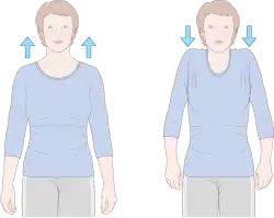 The shoulder-raising action may be accompanied by rotating the palms upwards, pulling closed lips downwards, raising the eyebrows or tilting the head to one side.[2] A shrug is an emblem, meaning that it integrates the vocabulary of only certain cultures and may be used in place of words.[3] In many countries, such as the United States, Sweden and Morocco, a shrug represents hesitation or lack of knowledge; however, in other countries, such as Japan and China, shrugging is uncommon and is not used to show hesitation. People from the Philippines, Iran and Iraq may interpret a shrug as a somewhat impolite sign of confidence.[4]