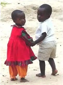 A relationship begins with the introduction of two siblings to one another. Older siblings are often made aware of their soon-to-be younger brother or sister at some point during their mother's pregnancy, which may help facilitate adjustment for the older child and result in a better immediate relationship with the newborn.[7] Parents pay attention not only to the newborns but to the older children to avoid sibling rivalry; interactions that can contribute to the older sibling's social aptitude can cognitively stimulate the younger sibling.[8] Older siblings even adapt their speech to accommodate for the low language comprehension of the younger sibling, much like parents do with baby talk.[9]
