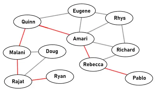 Six degrees of separation is the idea that all people are six or fewer social connections away from each other. As a result, a chain of "friend of a friend" statements can be made to connect any two people in a maximum of six steps. It is also known as the six handshakes rule.[1] Mathematically it means that a person shaking hands with 30 people, and then those 30 shaking hands with 30 other people, would after repeating this six times allow every person in a population as large as the United States to have shaken hands (seven times for the whole world).