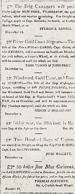 Starting in 1777, the states outlawed the importation of slaves one by one. They all acted to end the international trade, but, after the war, it was reopened in North Carolina (opened until 1794) and Georgia (opened until 1798) and South Carolina (opened until 1787, and then reopened again in 1803.)[50] In 1807, the United States Congress acted on President Thomas Jefferson's advice and, without controversy, made importing slaves from abroad a federal crime, effective the first day that the United States Constitution permitted this prohibition: January 1, 1808.[51]