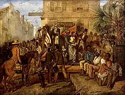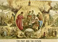 The legal institution of human chattel slavery, comprising the enslavement primarily of Africans and African Americans, was prevalent in the United States of America from its founding in 1776 until 1865, predominantly in the South. Slavery was established throughout European colonization in the Americas. From 1526, during the early colonial period, it was practiced in what became Britain's colonies, including the Thirteen Colonies that formed the United States. Under the law, an enslaved person was treated as property that could be bought, sold, or given away. Slavery lasted in about half of U.S. states until abolition in 1865, and issues concerning slavery seeped into every aspect of national politics, economics, and social custom.[1] In the decades after the end of Reconstruction in 1877, many of slavery's economic and social functions were continued through segregation, sharecropping, and convict leasing. Involuntary servitude as a punishment for crime remains legal.