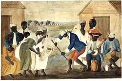 During most of the British colonial period, slavery existed in all the colonies. People enslaved in the North typically worked as house servants, artisans, laborers, and craftsmen, with the greater number in cities. Many men worked on the docks and in shipping. In 1703, more than 42 percent of New York City households held enslaved people in bondage, the second-highest proportion of any city in the colonies, behind only Charleston, South Carolina.[12] Enslaved people were also used as agricultural workers in farm communities, especially in the South, but also in upstate New York and Long Island, Connecticut, and New Jersey. By 1770, there were 397,924 black people out of a population of 2.17 million in what would soon become the United States. The slaves of the colonial era were unevenly distributed: 14,867 lived in New England, where they were three percent of the population; 34,679 lived in the mid-Atlantic colonies, where they were six percent of the population; and 347,378 in the five Southern Colonies, where they were 31 percent of the population.[13]