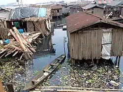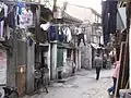 One of the identifying characteristics of slums is the lack of or inadequate public infrastructure.[136][137] From safe drinking water to electricity, from basic health care to police services, from affordable public transport to fire/ambulance services, from sanitation sewer to paved roads, new slums usually lack all of these. Established, old slums sometimes garner official support and get some of these infrastructure such as paved roads and unreliable electricity or water supply.[138] Slums usually lack street addresses, which creates further problems.[139]