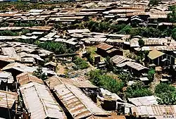 A slum is a highly populated urban residential area consisting of densely packed housing units of weak build quality and often associated with poverty. The infrastructure in slums is often deteriorated or incomplete, and they are primarily inhabited by impoverished people.[1] Although slums are usually located in urban areas, in some countries they can be located in suburban areas where housing quality is low and living conditions are poor.[2] While slums differ in size and other characteristics, most lack reliable sanitation services, supply of clean water, reliable electricity, law enforcement, and other basic services. Slum residences vary from shanty houses to professionally built dwellings which, because of poor-quality construction or lack of basic maintenance, have deteriorated.[3]