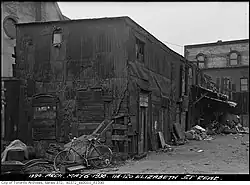 A type of slum housing, sometimes called poorhouses, crowded Boston Common, later at the fringes of the city.[41]