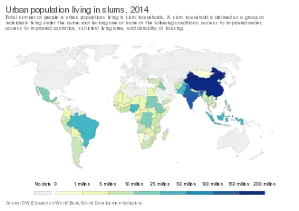 - ↑ "Urban population living in slums". Our World in Data. Archived from the original on April 7, 2020. Retrieved March 6, 2020.