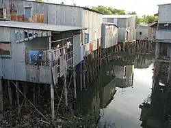 For example, it was recently proved that in a small favela in the northeast of Brazil (Favela Sururu de Capote), the migration of dismissed sugar cane factory workers to the city of Maceió (who initiated the self-construction of the favela), has been driven by the necessity to find a job in the city.[98] The same observation was noticed on the new migrants who contribute to the consolidation and growth of the slum. Also, the choice of the terrain for the construction of the favela (the margins of a lagoon) followed the rationale that it could offer conditions to provide them means of work. Circa 80% of residents living in that community live from the fishery of a mussel which divides the community through gender and age.[98] Alleys and houses were planned to facilitate the working activities, that provided subsistence and livelihood to the community. When resettled, the main reason of changes of formal housing units was due to the lack of possibilities to perform their work in the new houses designed according to formal architecture principles, or even by the distances they had to travel to work in the slum where they originally lived, which was in turn faced by residents by self-constructing spaces to shelter the work originally performed in the slum, in the formal housing units.[97] Similar observations were made in other slums.[97] Residents also reported that their work constitutes their dignity, citizenship, and self-esteem in the underprivileged settings in which they live.[97] The reflection of this recent research was possible due to participatory observations and the fact that the author of the research has lived in a slum to verify the socioeconomic practices which were prone to shape, plan and govern space in slums.[97]