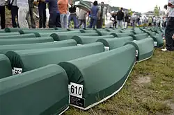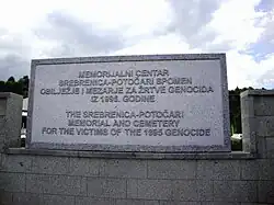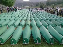 ![]() Some of the gravestones for the nearly 7,000 identified victims buried at the Srebrenica-Potočari Memorial and Cemetery for the Victims of the 1995 genocide.[1] | |