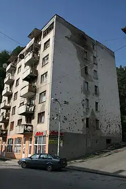 Between April and June 1992 Bosnian Serb forces, with support from the JNA, destroyed 296 predominantly Bosniak villages around Srebrenica, forcibly uprooted 70,000 Bosniaks from their homes and systematically massacred at least 3,166 Bosniaks, including women, children and elderly.[42] In neighbouring Bratunac, Bosniaks were either killed or forced to flee to Srebrenica, resulting in 1,156 deaths.[43] Thousands of Bosniaks were killed in Foča, Zvornik, Cerska and Snagovo.[44]