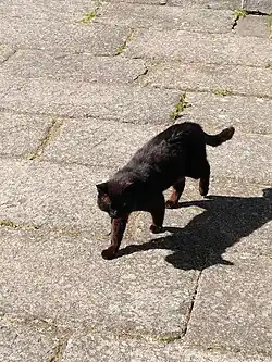 There are many different animals around the world that have been tied to superstitions. People in the West are familiar with the omen of a black cat crossing one's path.[57] Locomotive engineers believe a hare crossing one's path is bad luck.[58] According to the International Union for Conservation of Nature (IUCN) the giant anteater (Myrmecophaga tridactyla) is targeted by motorists in regions of Brazil who do not want the creature to cross in front of them and give them bad luck.[59]