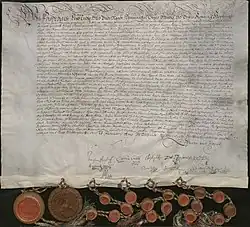 As part of the Treaty of Roskilde at the end of the Second Northern War, all areas in the historical region of Skåneland were ceded by Denmark-Norway to Sweden in early 1658. For the Swedish Empire, it was important to integrate these new subjects and to make the Scanians feel Swedish, rather than Danish. On 16 April 1658, representatives of Scania, Blekinge and Halland's nobility, citizens, clergy and peasants gathered in Malmö to swear fealty to Charles X Gustav. The king was not present but was represented by an empty chair surrounded by Swedish soldiers.[1]
