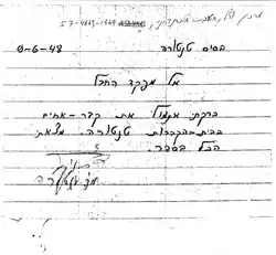 - ↑ Eye witness accounts from: Dan Vitkon, Yosef Graf, Salih 'Abn al-Rahman, Tuvia Lishansky Mordechai Sokoler, Ali 'Abd al-Rahman Dekansh, Najiah Abu Amr, Fawsi Mahmoud Tanj, Mustafa Masr.[20]