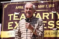 The Tea Party movement was an American fiscally conservative political movement within the Republican Party that began in 2007, catapulted into the mainstream by Congressman Ron Paul's presidential campaign.[1] The movement expanded in response to the policies of Democratic President Barack Obama[2][3] and was a major factor in the 2010 wave election[4][5] in which Republicans gained 63 House seats[6] and took control of the U.S. House of Representatives.[7]