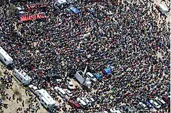 Carender first organized what she called a "Porkulus Protest" in Seattle on Presidents Day, February 16, the day before President Barack Obama signed the stimulus bill into law.[109] Carender said she did it without support from outside groups or city officials. "I just got fed up and planned it." Carender said 120 people participated. "Which is amazing for the bluest of blue cities I live in, and on only four days notice! This was due to me spending the entire four days calling and emailing every person, think tank, policy center, university professors (that were sympathetic), etc. in town, and not stopping until the day came."[106][110]