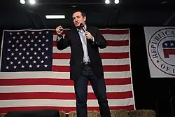 The presidential candidate Donald Trump praised the Tea Party movement throughout his 2016 campaign.[159] In August 2015, he told a Tea Party gathering in Nashville that "The tea party people are incredible people. These are people who work hard and love the country and they get beat up all the time by the media."[159] In a January 2016 CNN poll at the beginning of the 2016 Republican primary, Trump led all Republican candidates modestly among self-identified Tea Party voters with 37 percent supporting Trump and 34 percent supporting Ted Cruz.[160]
