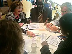 Just as development of a Theory of Change is a participatory process, a ToC-based monitoring and evaluation system can be designed in a participatory way. For example, grant managers can be involved in choosing the outcomes of greatest interest to them in their decision-making. Similarly, people on the ground can have input into which indicators to use and how to operationalize them, choices of instruments and methods of data collection, and which existing sources of data may be used in tracking indicators.[23]