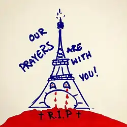 ![]() ![]() (Top) A crying Eiffel Tower in remembrance of those victims who lost their lives in the November 2015 Paris attacks