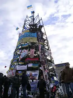 - ↑ (in Ukrainian) "Barricades at Maidan stand by May 25", Ukrayinska Pravda (10 March 2014)