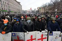 - ↑ "Opposition leaders call for people to join self-defense teams to protect EuroMaidan". Kyiv Post. 9 February 2014.