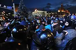 - ↑ "Ukraine police storm main Kyiv protest camp". BBC News. 18 February 2014. Retrieved 18 February 2014.