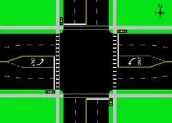 Turning rules are by no means universal. For example, in New Zealand (a drive-on-the-left country) between 1977 and 2012, left turning traffic had to give way to opposing right-turning traffic wishing to take the same road (unless there were multiple lanes, but then one must take care in case a vehicle jumped lanes). New Zealand abolished this particular rule on 25 March 2012, except at roundabouts or when denoted by a Give Way or Stop sign.[7] Although the rule caused initial driver confusion, and many intersections required or still require modification,[8] the change is predicted to eventually prevent one death and 13 serious injuries annually.
