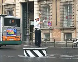 In addition to the rules applicable by default, traffic signs and traffic lights must be obeyed, and instructions may be given by a police officer, either routinely (on a busy crossing instead of traffic lights) or as road traffic control around a construction zone, accident, or other road disruption.