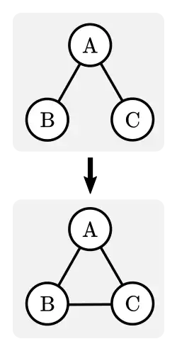 Triadic closure is a concept in social network theory, first suggested by German sociologist Georg Simmel in his 1908 book Soziologie [Sociology: Investigations on the Forms of Sociation].[1] Triadic closure is the property among three nodes A, B, and C (representing people, for instance), that if the connections A-B and A-C exist, there is a tendency for the new connection B-C to be formed.[2] Triadic closure can be used to understand and predict the growth of networks, although it is only one of many mechanisms by which new connections are formed in complex networks.[3]