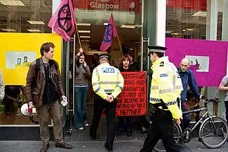 UK Uncut was a network of United Kingdom-based protest groups established in October 2010 to protest against cuts to public services and tax avoidance in the UK.[1][2][3][4][5][6] Various sources have described the group as left-wing in its political orientation.[7][8][9]