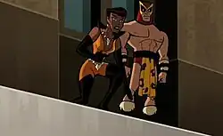 Sometime after her resignation from the JLA, Vixen traveled to the rundown neighborhood of Liberty Hill to recruit Tattooed Man for a new team of heroes she is putting together. However, Vixen discovered that a group of gang bangers who had formerly worked under Tattooed Man had taken control of the community and made a fortune for themselves through crime. Mistakenly believing that Tattooed Man was responsible for the acts of violence committed by his former thugs, Vixen rescinded her offer and attacked him.[47] After a brutal fight, Vixen willingly surrendered and agreed to leave and let Tattooed Man take care of his neighborhood in his own way.[48]