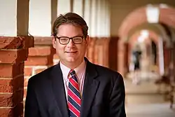 Wilcox was born on August 21, 1970.[4] As an undergraduate, Wilcox was a Jefferson Scholar at the University of Virginia. He graduated with a bachelor's degree with high honors in 1992. He earned an MA with distinction in 1997, and a PhD in 2001, both from Princeton University. He held research fellowships at Princeton University, Yale University, and the Brookings Institution before joining the faculty of the University of Virginia, where he is a Professor of Sociology and director of graduate studies.[1] His sociological research centers on marriage, fatherhood, and cohabitation, particularly on how family structure, civil society, and culture affect the quality and stability of family life, and the ways families shape the economic outcomes of individuals and societies. He teaches undergraduate- and graduate-level courses on statistics, family, and religion.[5][2]