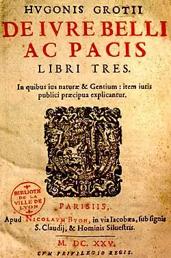 Hugo Grotius, considered the father of the law of nations and the first to conduct a comprehensive work on systematizing the international laws of war, De jure belli ac pacis (1625), concluded that rape (phrased as "the violation of women") "should not go unpunished in war any more than in peace",[16] rejecting the view that it is permissible to inflict damage or harm "on anything belonging to the enemy":