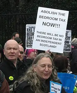 - ↑ "Thousands rally in Glasgow to protest Coalition's 'bedroom tax'". 30 March 2013. Retrieved 13 August 2013.