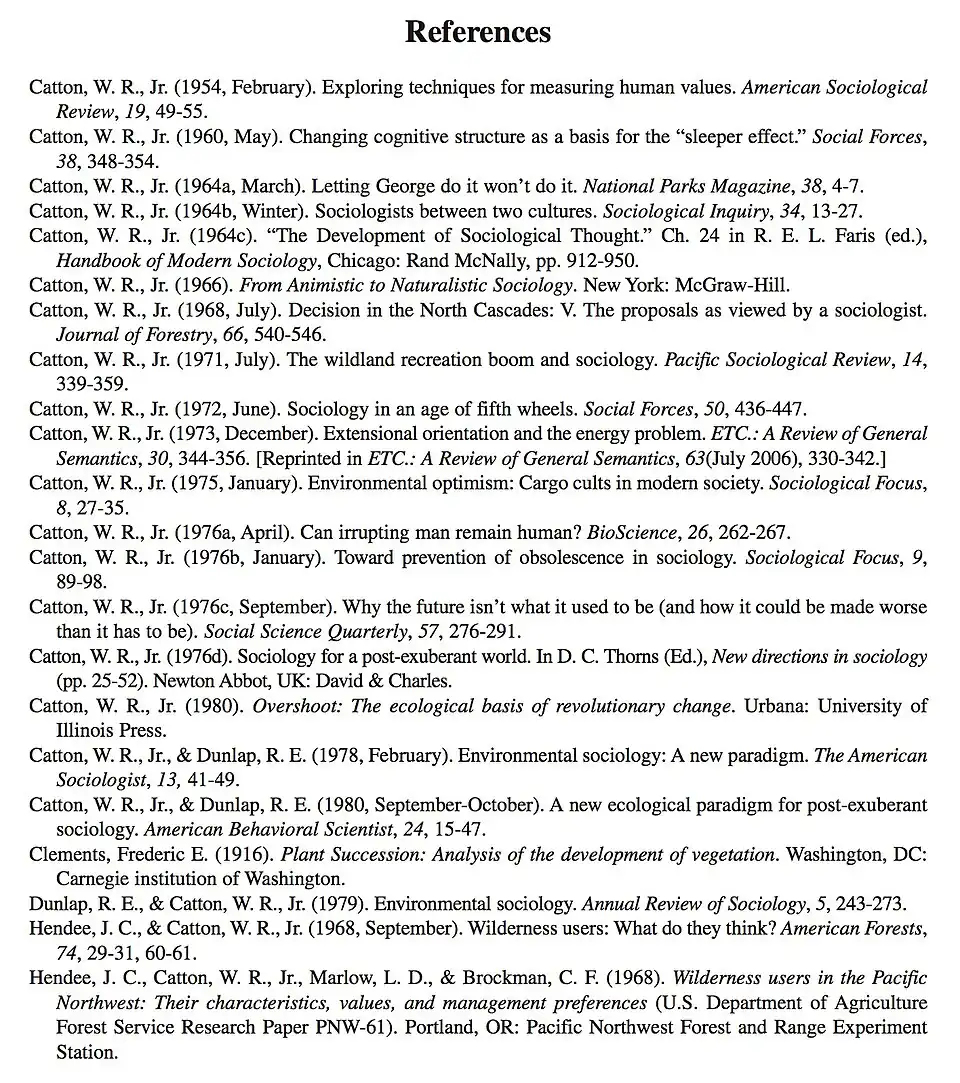 These were the references William R. Catton used in a 2008 "retrospective"[8] portraying his paradigm shift into environmental sociology.