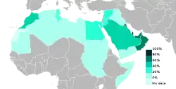 All of the states in the Arab world are majority-Muslim and Islam plays an important role in social and political life.[16] so the impact of Sharia law on women's rights varies depending on a country's interpretation of it and how it connects to local traditions. Most countries in the Arab world place family matters under the jurisdiction of religious rather than civil courts.[17] Many countries have religiously-justified "guardianship laws" that give women the status of minors and make them dependent on spouses or male relatives.[9] In Syria, marriage contracts are between the groom and the bride's father, and Syrian law does not recognize the concept of marital rape.[15] However, official recognition of Islam does not necessarily reduce women's rights. Certain interpretations of Sharia define fertility decisions as a private matter.[18] Tunisia's pre-Spring constitution named Islam as the state religion, but since the 1950s and 1960s its laws have been more secular and have supported some women's rights. Women in Tunisia have access to contraceptives and abortions; polygamy is illegal; there is a minimum marriage age; and women have many marital and divorce rights. However, daughters have fewer inheritance rights than sons and husbands take control of wives' property after marriage.[9][17]