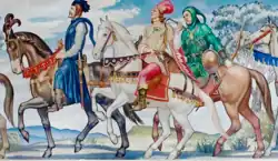 13th-century French depiction of the Three Estates: (1) those who pray (shown as a cleric); (2) those who fight (shown as a knight); and (3) those who work (shown as a peasant).