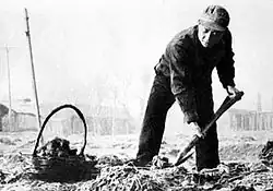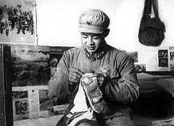The People's Liberation Army (PLA) were introduced to suku (Chinese: 诉苦; pinyin: Sùkǔ) or 'speaking bitterness' as early as 1947 with the publication of a handbook in 1947 called "Speaking Bitterness and Seeking Vengeance" (Sùkǔ fùchóu).[3] Following the communist take-over of China, residents in communities in Shanghai such as Fangua Lane started to have their first experiences with suku.[4] This practice of suku influenced yiku sitian, aimed at legitimizing the regime at the time.[4] In 1960, rather than speaking bitterness, the practice shifted to remembering or recalling bitterness.[4] The concept was first used by the military in China when soldiers of the PLA would hear of violence and famine like difficulties back home. The soldiers were made to remember that the current situation they were in was better than the past, and that they should be grateful to the party.[4] In 1961 all units of the PLA had similar yiku sitian campaigns.[4] By the end of 1963, hundreds of bureau offices and thousands of work units in Shanghai had conducted yiku sitian campaigns.[5] Basic necessities of life such as food and shelter, and simple concepts such as the improvement of an open sewer in a poor community found their way into these campaigns.[6]