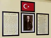 ![]() Imnul afișat într-o școală alături de portetul lui Atatürk | |