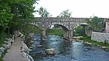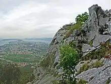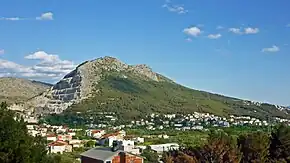 Este situată în trecătoarea de la poalele muntelui Mosor(d), pe latura sa sudică și pe latura vestică/nordică a versantului Perun, de-a lungul râului cu același nume.