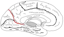 Plica inferioară numită plică de trecere cuneolimbică Broca (plică de trecere parietooccipitală internă și inferioară Gratiolet, girusul cuneat, Gyrus cunei) este constantă și ocupă partea inferioară a șanțului parietooccipital, care îl separă de șanțul calcarin. Plică de trecere cuneolimbică Broca separă complet șanțul parietooccipital de șanțul calcarin, astfel încât traiectul comun a lor este aparent doar la suprafață. Plică de trecere cuneolimbică Broca este, în general, formată din două sau chiar trei plici mici paralele, care se extind la vârful cuneusului spre partea posterioară a girusului cingular.