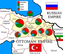 | 1 inclusiv Kizilbași 2 inclusiv Zaza 3 preponderent Asirieni (nestorieni, iacobiți, caldeeni), circasieni, greci, yazidiți, persani, lazi, romi | ||||||||