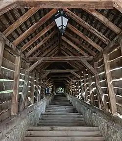 În 1642[6] s-a construit așa-numita „Scară acoperită” (numită și „Scara elevilor”), care leagă Orașul de Sus cu școala. Inițial avea 300 de trepte, acum (2011) are 176.
