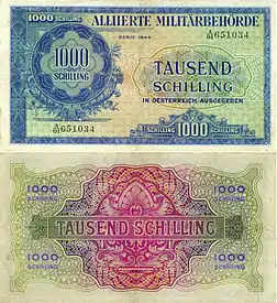 La sfârșitul celui de-al Doilea Război Mondial, trupele aliate au ocupat Austria. Două tipuri de monede erau în circulație: Reichsmark și șilingul forțelor aliate.