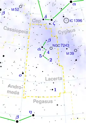 | Cea mai strălucitoare | α Lac (3,76m) |