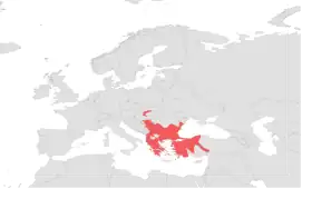 În România a fost semnalată în sudui Olteniei, în câmpia Dunării și în Dobrogea. Lipsește în nord-vestul României, în Transilvania, Moldova și Bucovina.