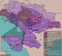 În 1195, cumnatul lui Stefan Nemanja, Alexie al III-lea Angelos, a moștenit tronul bizantin. Nemanja, obosit de guvernare, a dat puterea și pământurile fiului său cel mai mare, Vukan Nemanjić. A unit Zeta cu Trebinje (Travunija), Hvosno (Metohija) și capitala sa Toplica a ajuns sub stăpânirea absolută a lui Vukan. Ștefan I Prvovenčani a reușit să se întoarcă în Serbia și să-l răstoarne de la putere pe Vukan în 1204 devenind din nou Mare župan. Prin intervenția celui de-al treilea frate, arhiepiscopul Sava, Ștefan l-a cruțat pe Vukan și i-a dat voie să conducă mai departe moșiile sale (apanajul) din Zeta (Duklja), unde și-a păstrat titlul de rege.