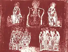 Consiliul împotriva bogomilismului, organizat de Ștefan, așa cum este reprezentat într-o frescă din 1290